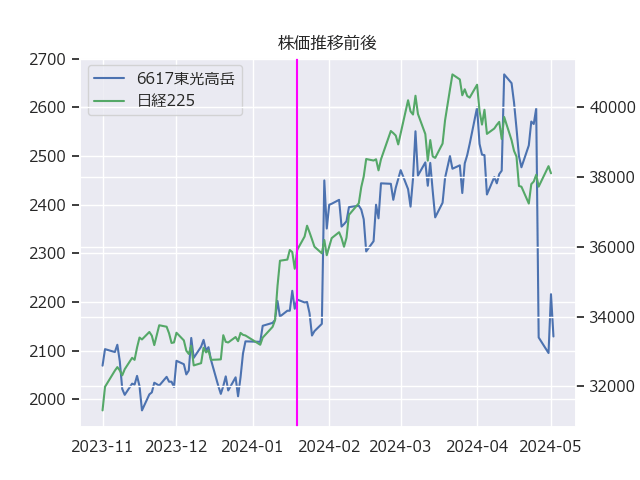 株価の推移をみると、不適切事案公表時点では株価が推移していない。直近は日経225の推移と近い推移を示していたので、株主は様子をみたと思われる。その後1月29日に業績予想修正を公表して、株価が上昇しているので、株主は好感しているが、不適切事案の影響は織り込まれていない。